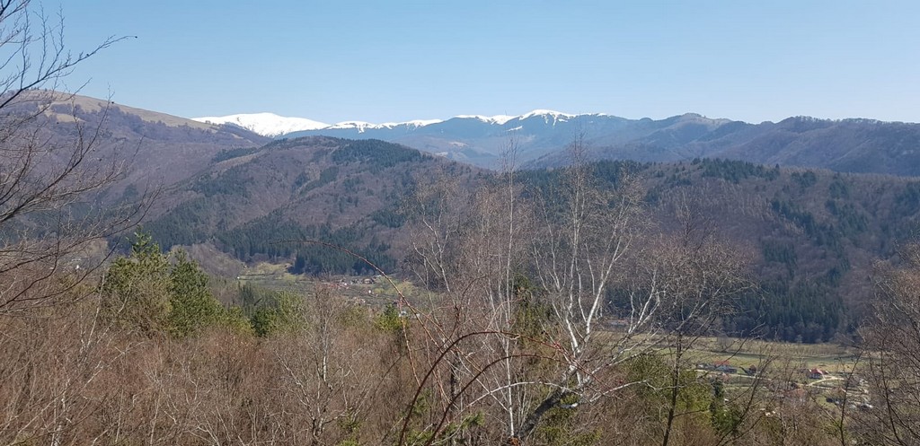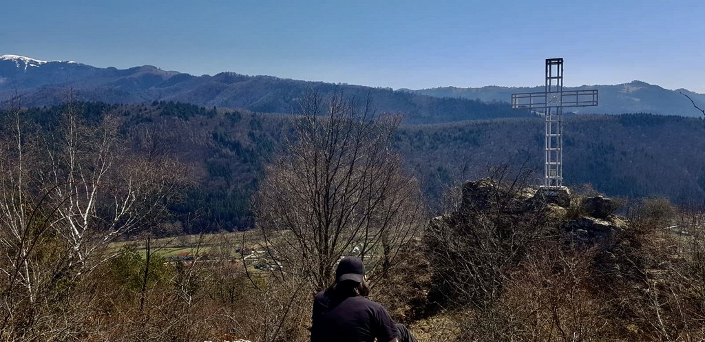 Dupa un urcus sustinut pana la CRUCEA DE PE COLTII ALBINEI, efortul ne-a fost rasplatit cu o priveliste panoramica asupra Muntilor Leaota, a satului Stoenesti si a Raului Dambovita ce-l strabate.
