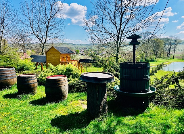 Atmosfera domeniului e completată de un teasc vechi, butoaie folosite drept mese și un panou realizat dintr-un fund de butoi vechi pe care scria: Kelementelki -numele maghiar al localității Călimănești, in trei limbi · Cramă · Borpince · Winery si anul 1832 – probabil o dată de referință pentru tradiția viticolă a locului.