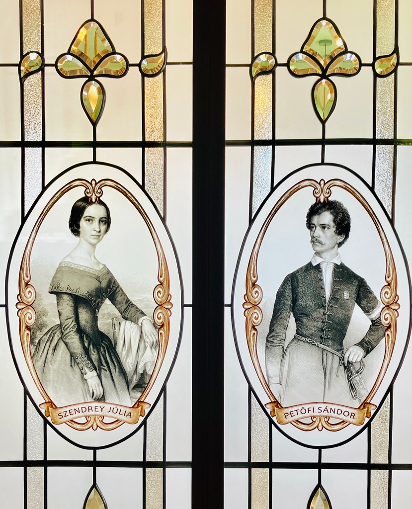 Tocmai de aceea nu m-a surprins că restaurantul cramei se numește POET– un omagiu adus poetului Petőfi Sándor. Și nici că în vitraliul elegant al restaurantului l-am regăsit pe poet alături de Júlia Szendrey – scriitoare, poetă, traducătoare, soția și muza sa.