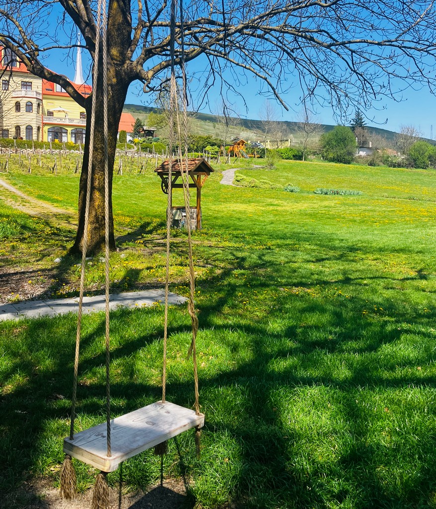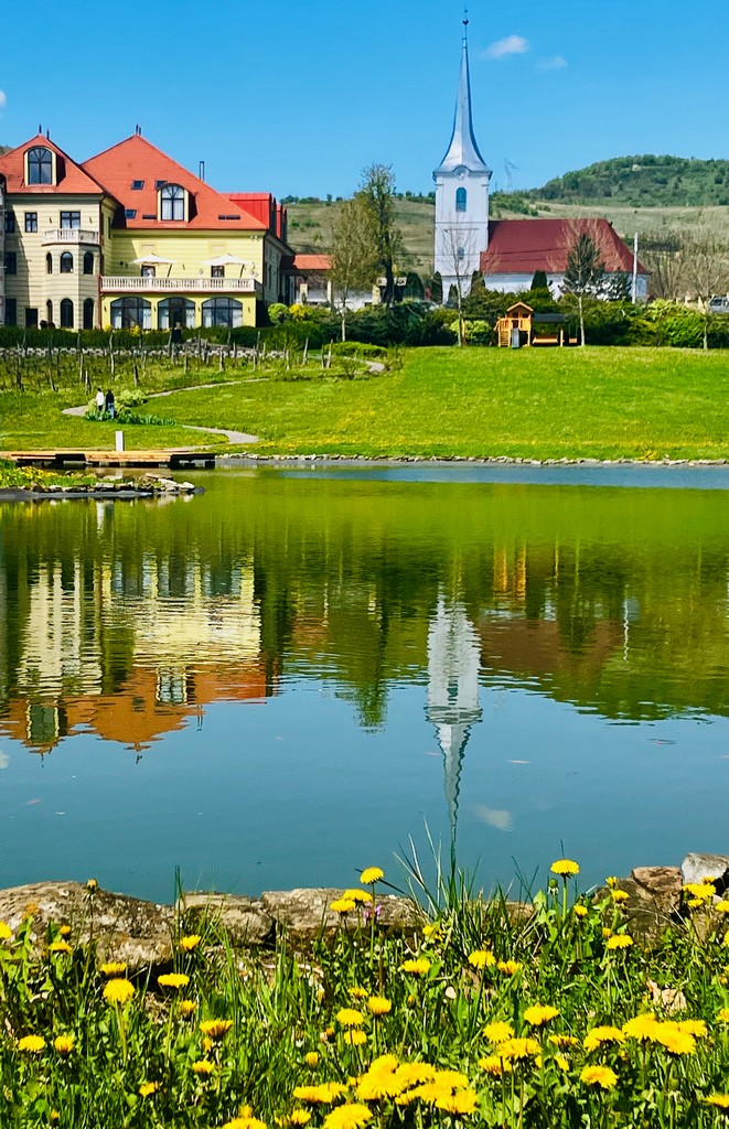 Iazul din spatele conacului se vede cel mai bine de pe terasa restaurantului. Am mai vazut pe domeniul PETRY ESTATE WINERY un foisor, un poton pentru a admira carasii aurii din iaz, un leagăn fotogenic și un loc de joacă pentru copii.